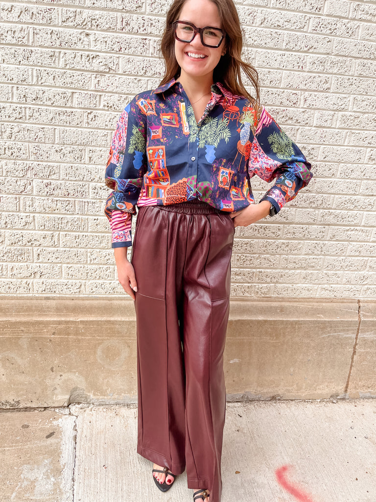 A stunning statement print shirt from FRNCH in a luxury sateen fabric. With shirt collar, straight cropped shape with curved hem. Perfect for wearing over your dark wide leg jeans.64% Cotton 36% Lyocell