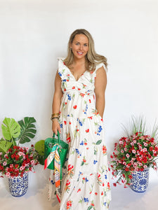 French Floral Peter Pan Emb Tier Maxi Dress- Karlie