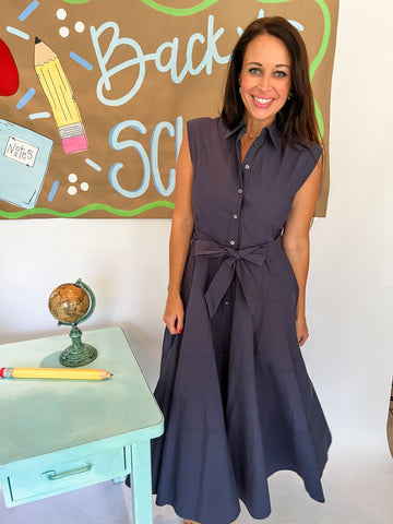 Bold Vertical Stripes Square Neck Midi Dress- Hunter Green