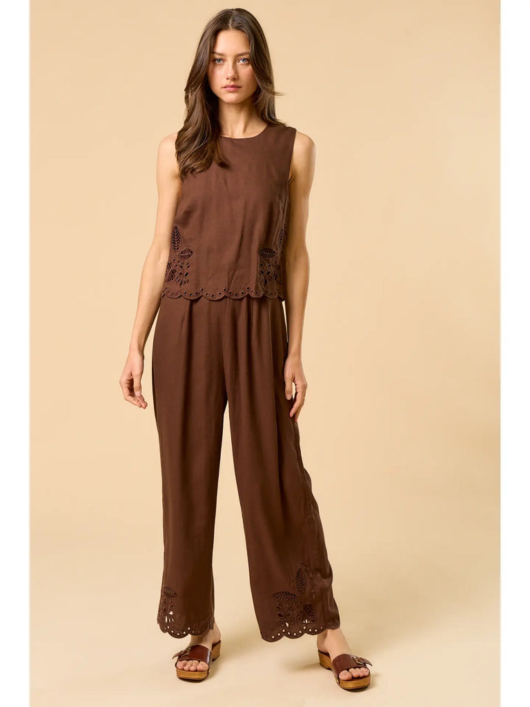 Embroidered Sleeveless Jumpsuit- Chocolate Brown-K. Ellis Boutique
