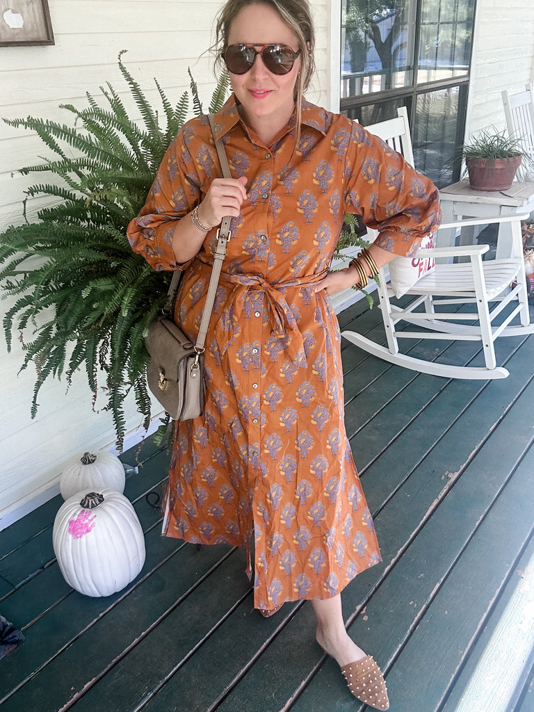 Emily Block Print Midi Dress- Brown Print