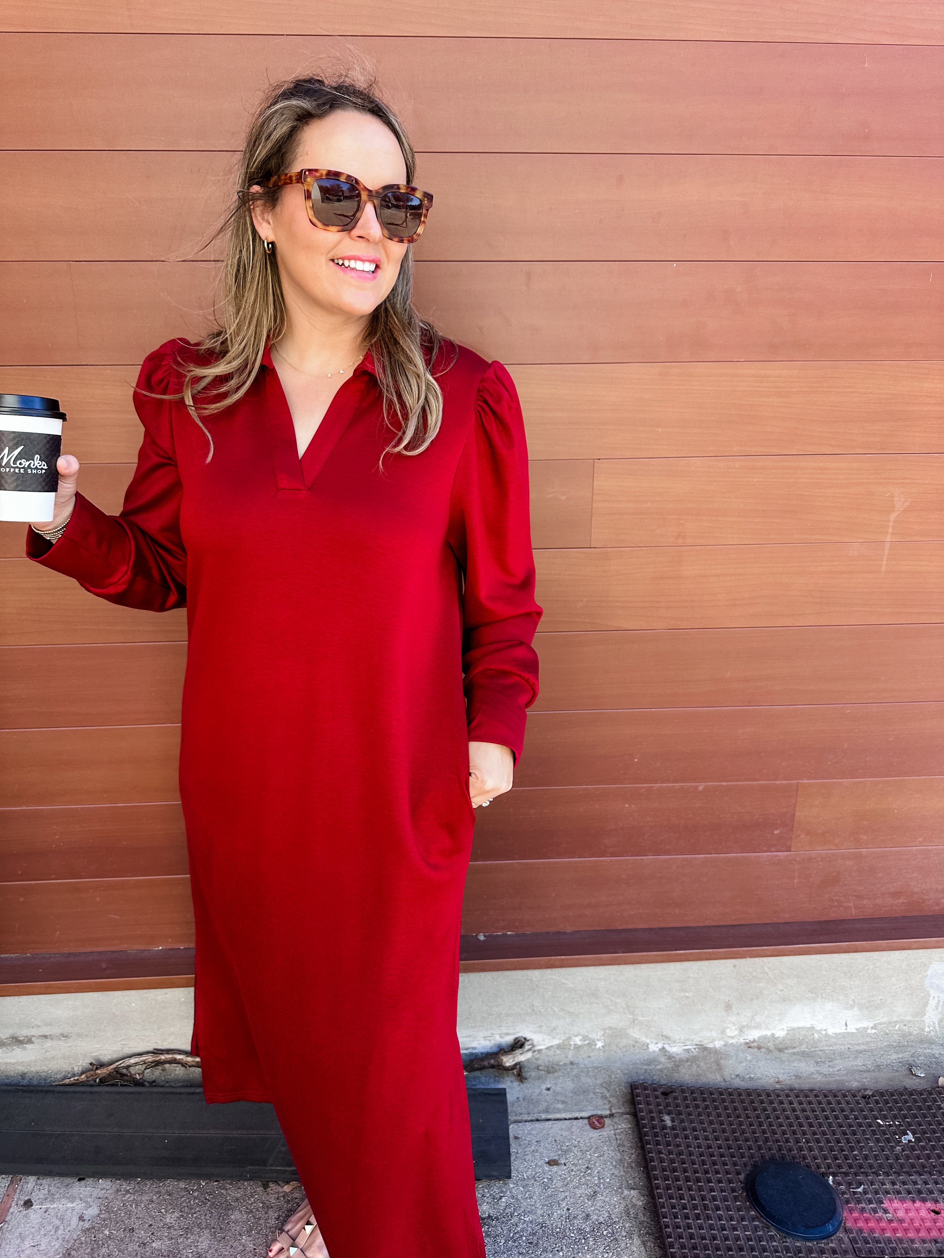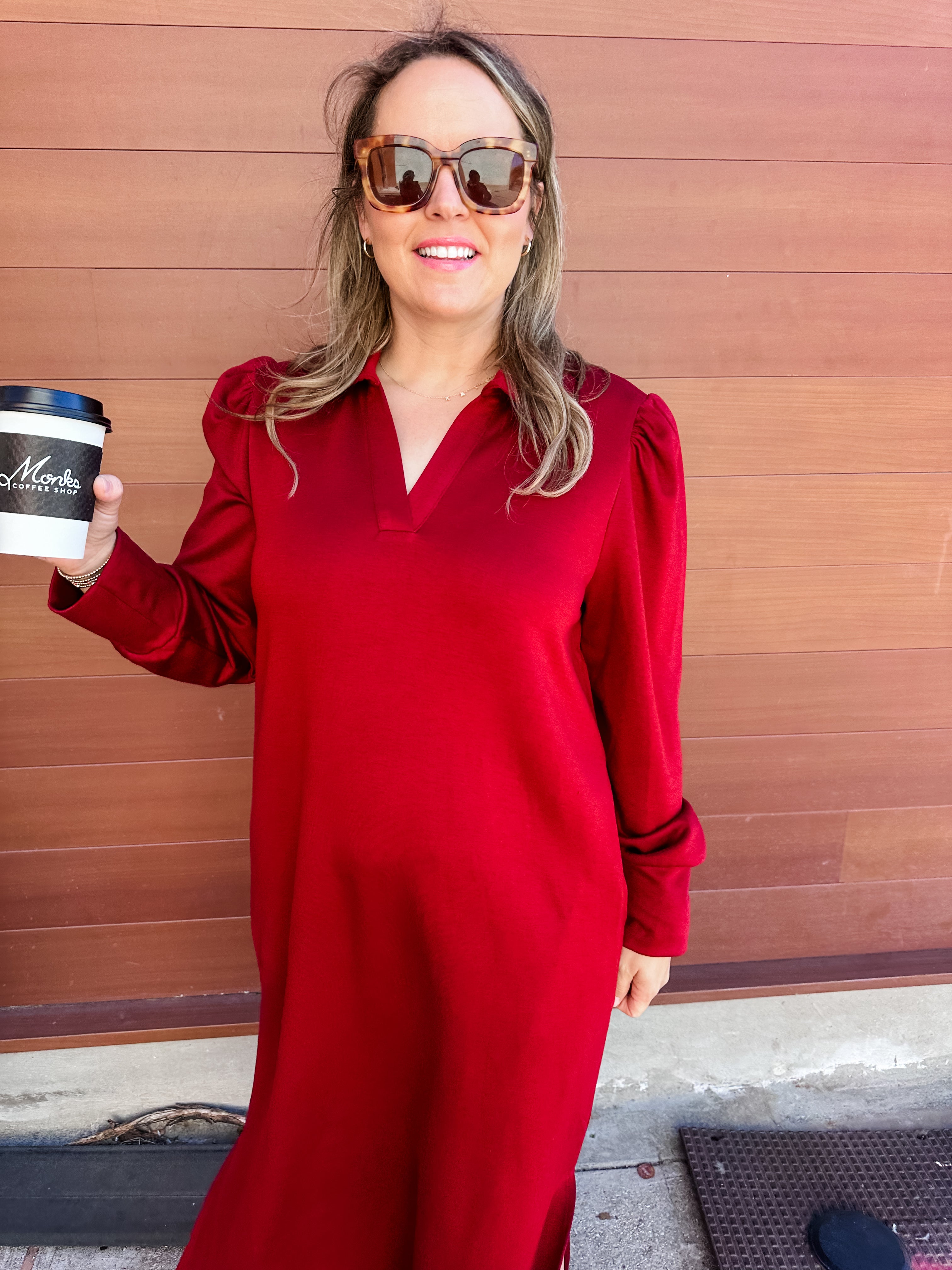 Side Slit Solid Midi Dress- Wine