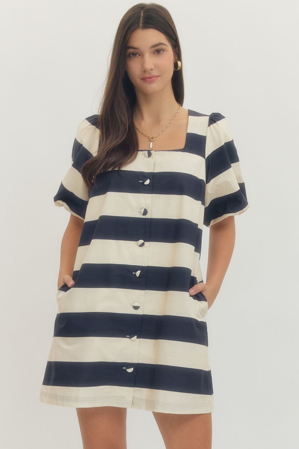 The Naomi Square Neck Stripe Mini Dress- Navy & White