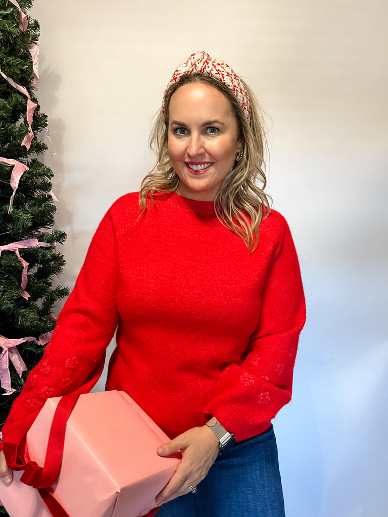 + Floral knit puff sleeve sweater + Ribbed round neckline + Raglan seam + Long puff sleeves with floral knit design + Ribbed hem