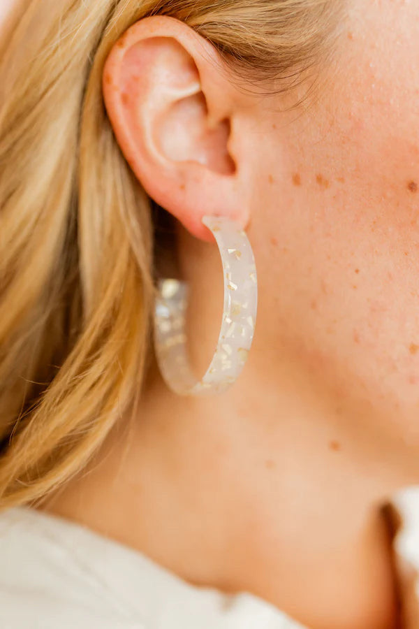 The Ashley hoop is a perfectly sized acetate hoop. It is 50mm wide, is light-weight, waterproof, and the staple earring for every stylish gal.