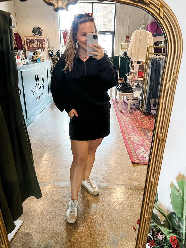 Quilted Pullover Skort Set- Black