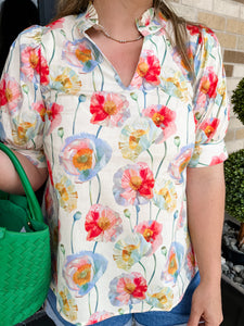 Madeline Floral Embroidery Mock Neck Sweater- Pink