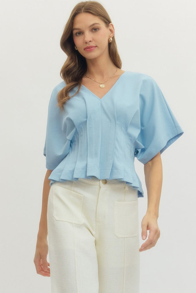 Blaire Pleated Waist Top- Light Blue