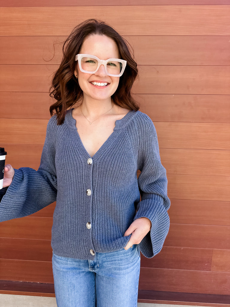 Blouson Sleeve Cardigan- Denim Blue-K. Ellis Boutique