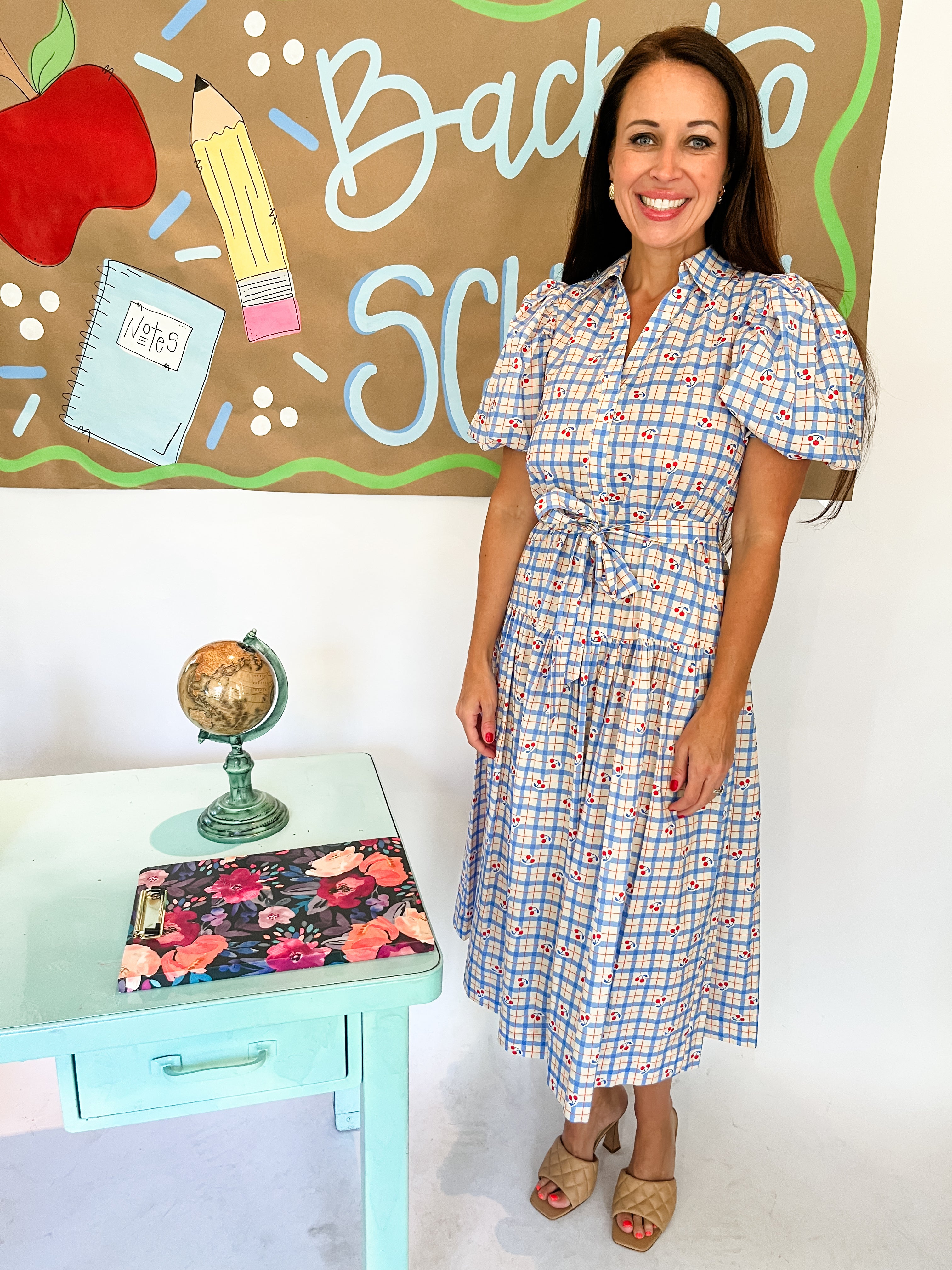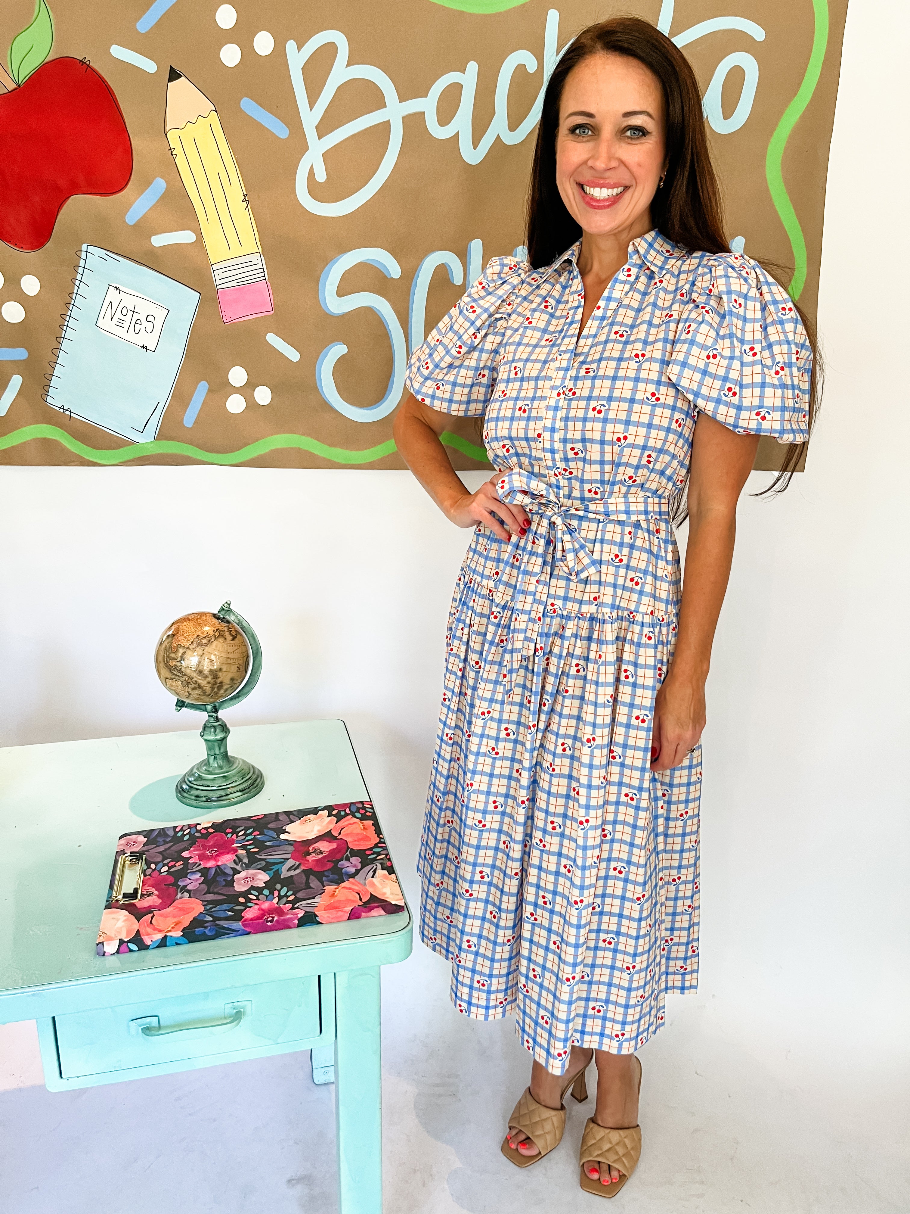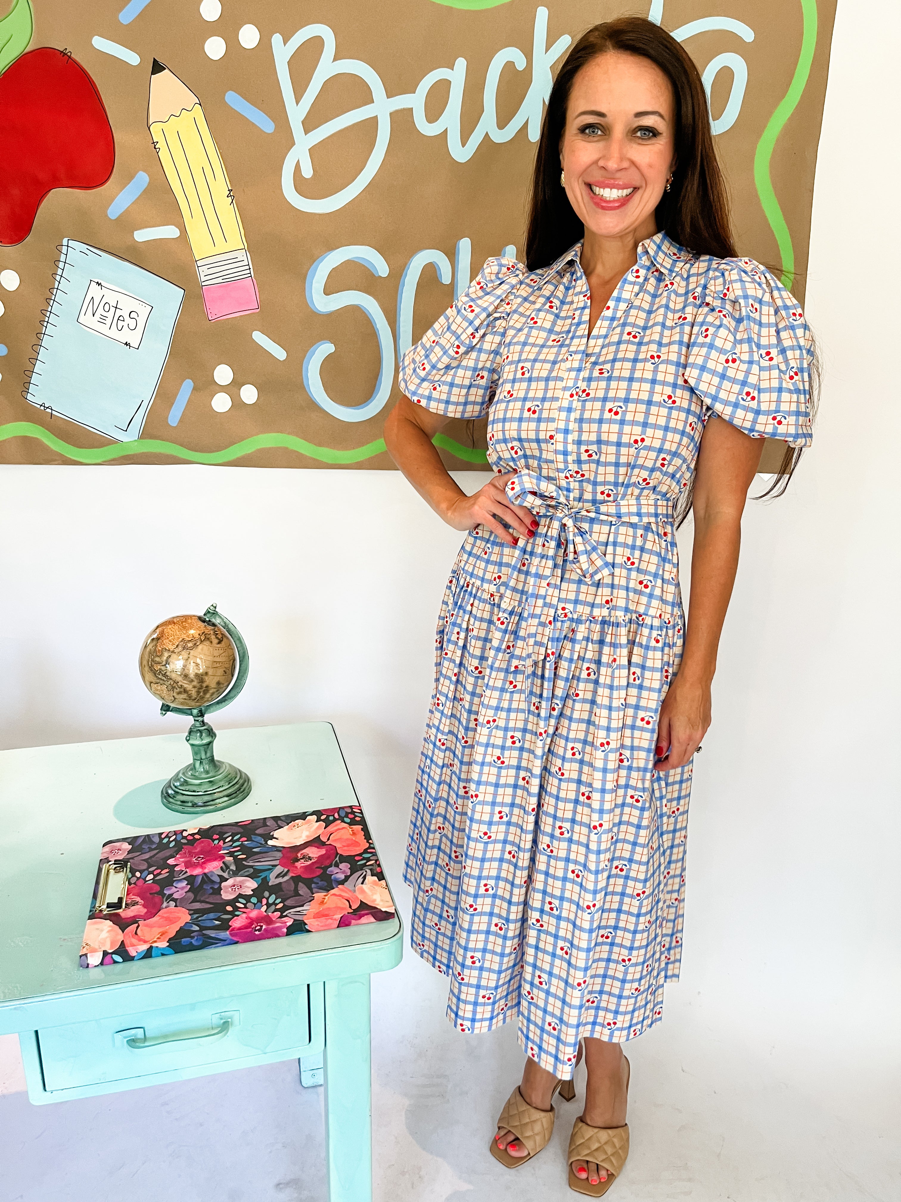 Checker with Cherry Print Midi Dress