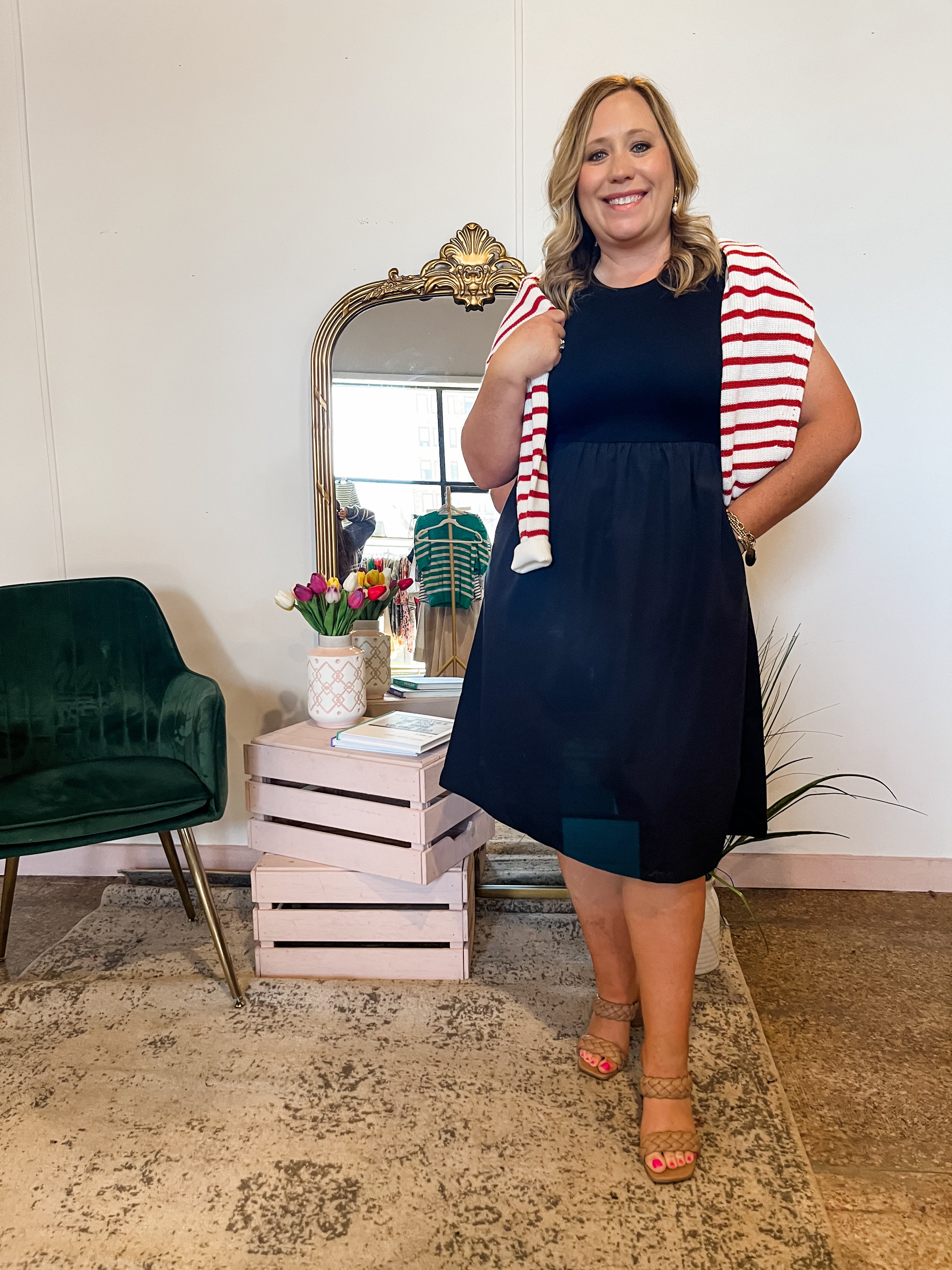 Midi dress sleeveless black. Two different textures. Great styled alone or throw on a comfy sweater.
